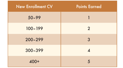 Chart Points for Personal Enrollments: 50-99 CV 1 Point 100-199 CV 2 Points 200-299 CV 3 Points 300-399 CV 4 Points 400+ CV 5 Points